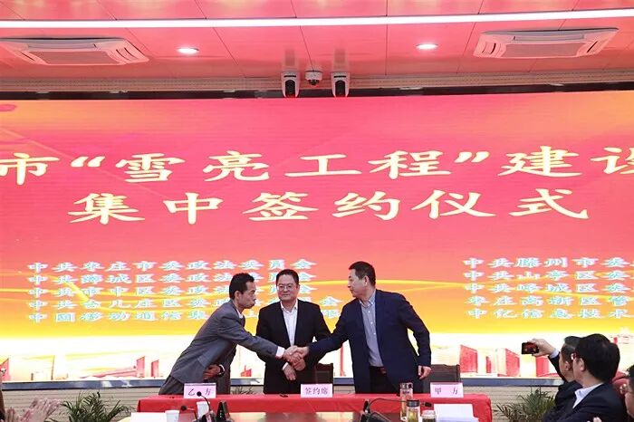 10月18日上午,全市“雪亮工程”建设项目集中签约仪式在鲁南大数据中心隆重举行,市委常委、宣传部长、政法委书记李爱杰出席仪式并讲话;市委政法委分管日常工作的副书记张建福、中国移动通信集团山东有限公司枣庄分公司总经理孙世伟、中亿信息技术有限公司总经理于莹以及各区(市)委常委、政法委书记,枣庄高新区管委会分管副主任参加签约仪式;市委政法委副书记孟凡华主持签约仪式;市“雪亮工程”领导小组办公室成员单位负责人、监理单位业务代表受邀列席仪式。 签约仪式上,市委政法委社会治理科负责人介绍了全市“雪亮工程”建设情况;市委政法委分管日常工作的副书记张建福,各区(市)委政法委分管副书记、枣庄高新区政法办主任作为甲方代表,与乙方代表分别签订项目合同;孙世伟代表乙方作了表态发言;李爱杰代表市委、市政府,对项目成功签约表示热烈祝贺,对参与项目建设的同志们表示诚挚慰问和衷心感谢! 李爱杰指出,在市委、市政府正确领导下,市委政法委牵头,市公安局、市发改委、市财政局、市工信局、市自然资源和规划局、市大数据局等部门密切配合,做了大量扎实有效的工作,推动了可研编制、项目立项、政府购买服务计划报批、专家论证、预算评审、招标采购等工作顺利开展,为项目成功签约奠定了坚实基础。中标的中国移动通信集团山东有限公司、中亿信息技术有限公司作为联合体,共同投资推进全市“雪亮工程”建设,这两家企业技术先进,实力雄厚,集成能力强,运营经验丰富,为推进项目建设提供了有力保障。 李爱杰强调,全市各级各有关部门要牢固树立“一盘棋”思想,积极配合项目建设单位,主动作为,跟进服务,进一步提升服务质量和水平,为项目建设打造良好环境,切实把全市“雪亮工程”项目打造成“国字号”的精品工程、典范工程,真正让“雪亮工程”项目成为创新市域社会治理、保障人民安居乐业、维护社会安全稳定的“民生工程”“民心工程”。