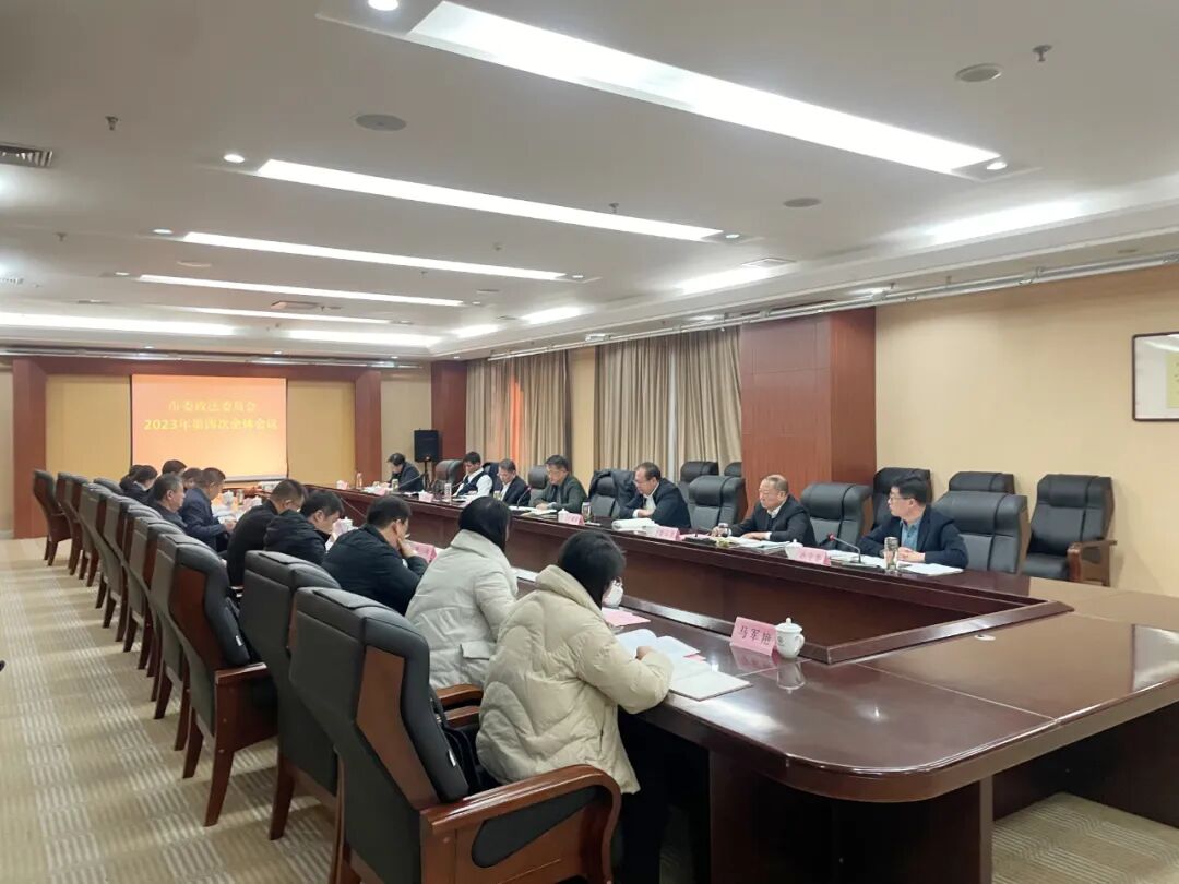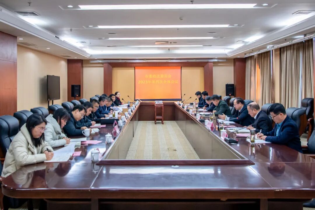 11月15日上午,市委政法委员会2023年第四次全体会议召开。市委常委、秘书长赵刚主持会议并讲话,市法院院长于锡涛,市检察院检察长宋晓磊出席会议。 会议传达学习了习近平总书记重要讲话和中央有关会议精神,听取了政法各单位今年工作的情况汇报和明年工作的谋划打算,并对下步政法重点工作进行了安排部署。 会议强调,要强化政治建设,坚持党对政法工作的绝对领导,严格落实好《中国共产党政法工作条例》明确的各项职责任务,确保在思想上政治上行动上同党中央保持高度一致;要主动担当作为,全力护航经济社会高质量发展,充分发挥政法机关管理、服务、打击、保护等职能作用,努力营造市场化、法治化、制度化的长期稳定发展环境;要坚持人民至上,多措并举纵深推进法治建设,持续巩固全国法治政府建设示范市成果,深入推进政法领域数字化改革,从立法、执法、司法、守法各环节入手,努力为广大群众提供优质高效的司法供给产品;要聚焦关键领域,深入系统推进市域社会治理,健全完善矛盾纠纷多元化解体系,全力推进扫黑除恶常态化,持续开展平安创建活动,全力筑牢平安“底座”;要从严管党治警,有针对性地开展教育培训,不断提高政法干警综合素质和履职能力,打造德才兼备的高素质政法队伍。 市委政法委机关副县级干部及各科室负责同志列席会议。