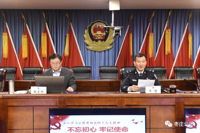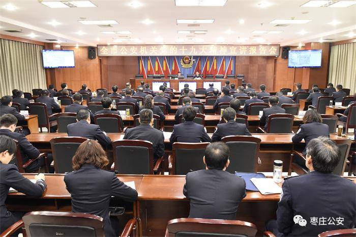 11月17日,市公安局举办全市公安机关党的十九大精神宣讲报告会,邀请市委宣讲团成员、枣庄学院马克思主义学院院长、法学博士张昌林教授做宣讲报告。市公安局在家党委委员、市公安局各单位主要负责人及各分(市)局政工室主任和部分民警代表参加了报告会。市公安局党委副书记、政委黄健主持报告会。 会上,张昌林以《不忘初心 牢记使命 高举旗帜 奋勇筑梦》为题,作了一场十分精彩、非常生动的宣讲报告,对党的十九大精神进行了全面深入的讲解。报告深入浅出,观点鲜明,既有理论总结,又有材料剖析;既有形象说明,又有事实根据;既全面系统,又重点突出,对我们全面把握和理解党的十九大精神具有很强的指导意义。 黄健在讲话中指出,学习贯彻党的十九大精神是全市公安机关当前和今后一个时期的首要政治任务。大家要珍惜这次难得的学习机会,认真听讲,做好记录。要切实在学懂、弄通、做实上下功夫,要牢固树立“四个意识”,增强“四个自信”,不忘初心,牢记使命,忠诚履职,真正用党的十九大精神武装头脑、指导实践、推动工作。 就全市公安机关深入学习贯彻党的十九大精神,黄健要求:一是要进一步强化组织领导。11月10号,市局印发了《全市公安机关深入学习贯彻党的十九大精神工作方案》。各单位都要明确一名领导同志具体负责学习组织工作,及时跟进掌握学习贯彻情况。二是要进一步完善长效机制。各单位要把学习贯彻党的十九大精神作为一项长期任务,及时梳理总结学习贯彻过程中的好经验、好做法,提炼、固化为日常规范,不断掀起学习贯彻的热潮,确保常态长效。三是要进一步做好结合文章。各单位要把学习贯彻党的十九大精神与落实习近平总书记“四句话、十六字”总要求结合起来,与“两学一做”常态化制度化和“不忘初心、牢记使命”主题教育结合起来,与做好岁末年初的公安工作结合起来,与服务发展、服务民生结合起来,做到工作和学习“两不误、双促进”,更好地担负起党和人民赋予的重任,为建设自然生态、宜居宜业新枣庄做出新的更大贡献。
