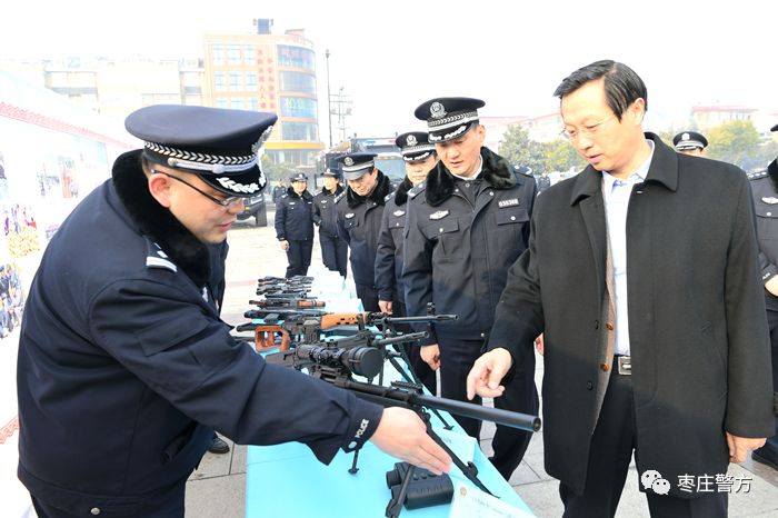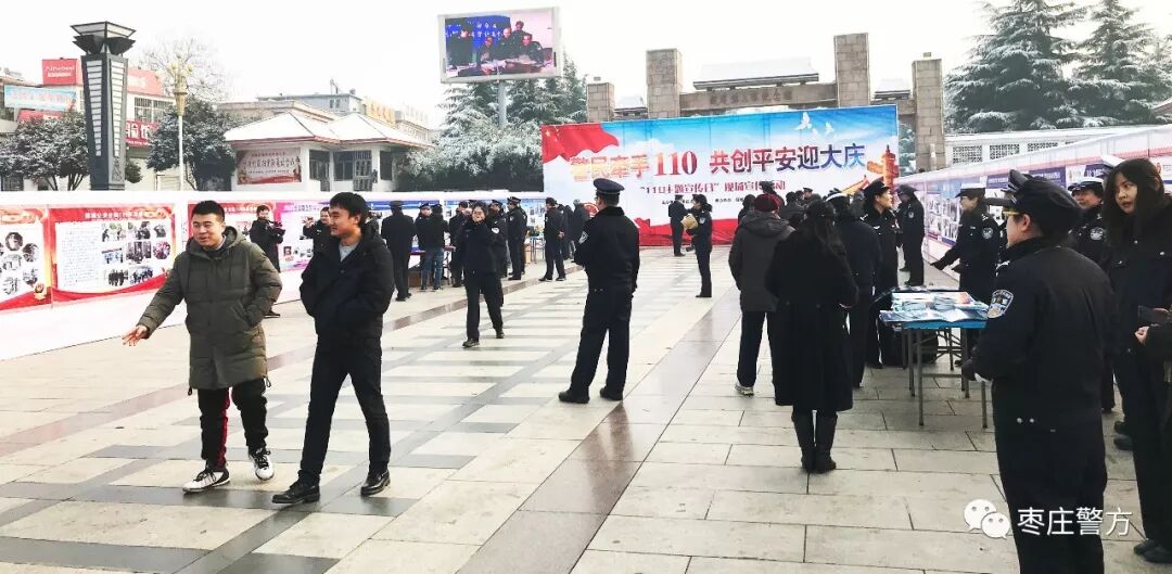 2019年1月10日是第33个全国“110宣传日”,全市公安机关以“警民牵手110,共创平安迎大庆”为主题,组织开展了形式多样的集中宣传活动。 1月10日,市人大常委会副主任刘志才,市局党委副书记、政委黄健,市局党委委员、指挥中心主任李杰亲临枣庄市暨薛城区110集中宣传活动现场临山广场,观看了宣传展板和实物展示,听取了各单位讲解介绍,与现场群众交流互动听取对公安工作的建议意见。 在薛城区临山广场,市局各参展单位和薛城分局突出扫黑除恶专项斗争、非警务警情分流、公安改革等重点,在活动现场设置了咨询区、互动区、展板区、装备展示区,专门设计制作宣传传单、海报、挂历、展板等资料,向过往群众介绍公安机关在打击犯罪、社会治理、便民服务中取得的丰硕战果。