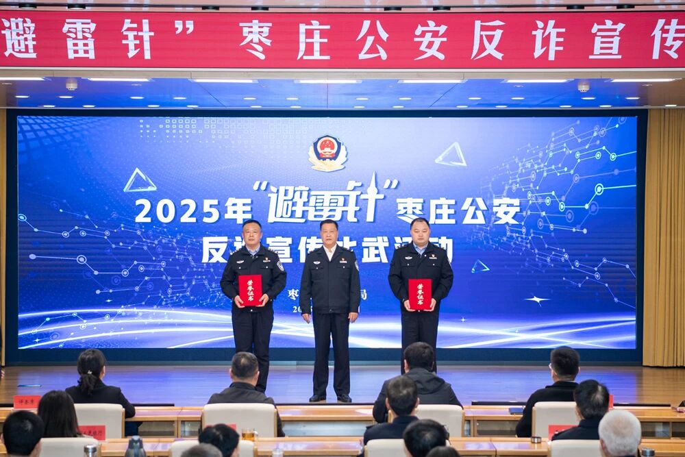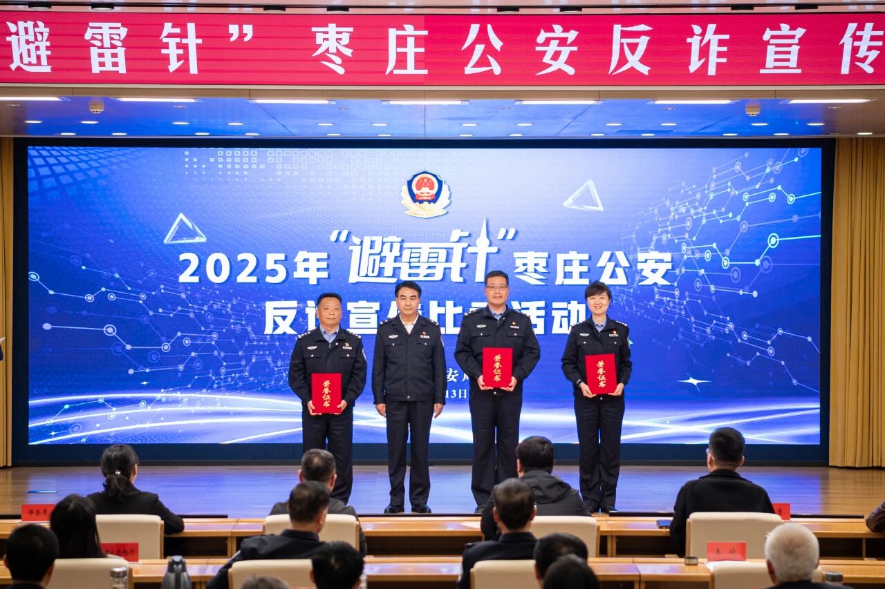 2025年“避雷针”枣庄公安反诈宣传比武活动 高燃举办 17部反诈作品轮番登场 用作品说话、凭创意争先 呈现了一场 笑点与知识点密集 的“反诈嘉年华” 活动邀请了市委宣传部、市委网信办、团市委、市妇联相关负责同志,山东广播电视台、齐鲁晚报、枣庄传媒集团等资深记者担任评委。各评委围绕参赛作品的创意性、教育性、传播性、制作质量等方面,对参赛作品进行逐一打分,并从网络传播、新媒体制作等不同角度进行了精彩点评。 17部作品特点鲜明、创意满满,紧紧抓住流量密码,生动地宣传反诈知识,打响了枣庄公安反诈宣传品牌。 比赛最终评选出一等奖、二等奖、三等奖、优秀奖及优秀组织奖等多个奖项: 高新区分局作品《勿把骗子当“真爱”》获得一等奖 峄城分局作品《网络兼职莫轻信沦为“帮凶”把牢进》、山亭分局作品《月底冲业绩?这班不上也罢!》获得二等奖 滕州市局作品《网》、高新区分局作品《丢失的快递》、峄城分局作品《情人劫》获得三等奖 滕州市局、山亭分局、峄城分局、高新区分局荣获优秀组织奖 市公安局党委副书记、政委刘勇出席活动并致辞,市公安局党委委员、副局长杜茂广,政治部主任王琦出席活动。市人民银行、枣庄金融监管分局、驻枣17家银行、4家通信运营商等联席会议成员单位相关负责同志;市公安局相关单位主要负责同志;各分(市)局局领导及有关警种部门主要负责同志参加活动。