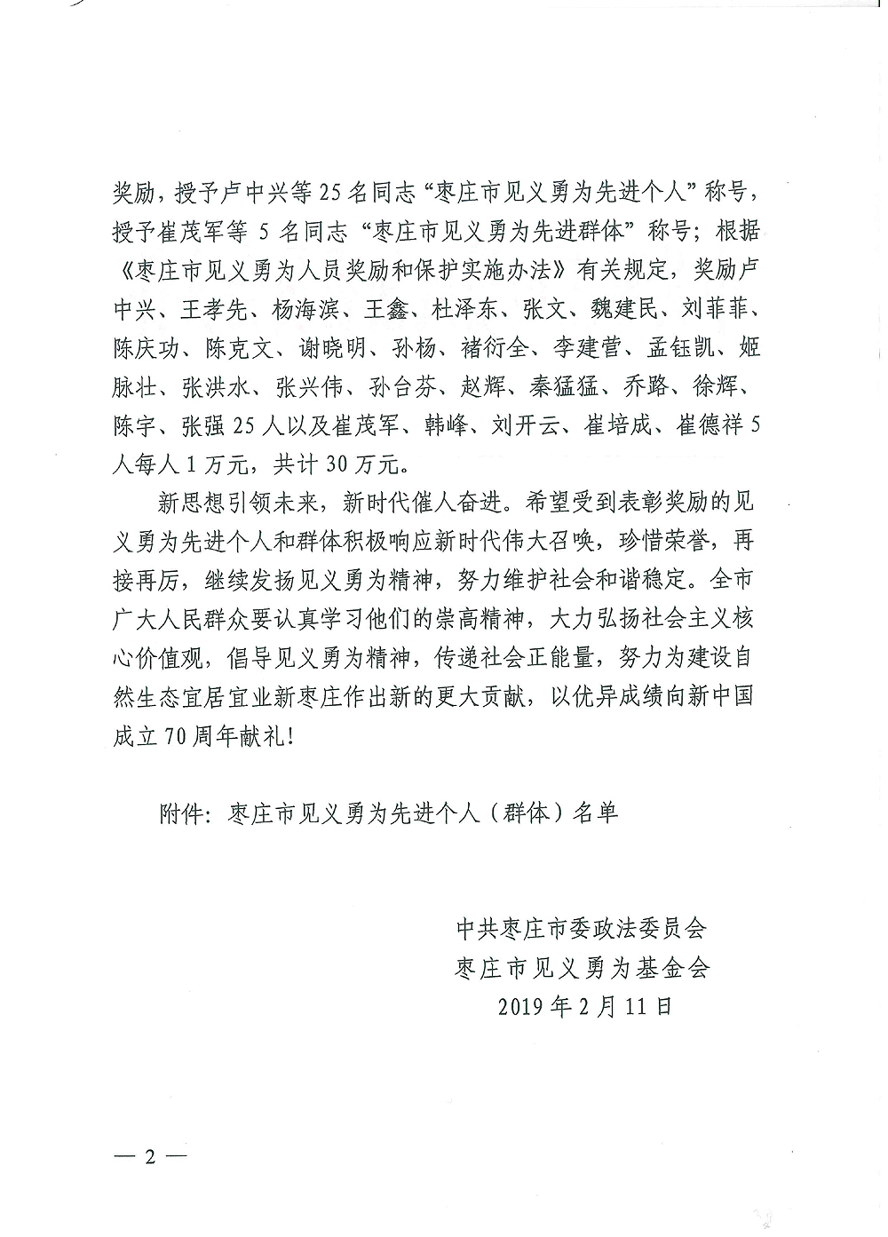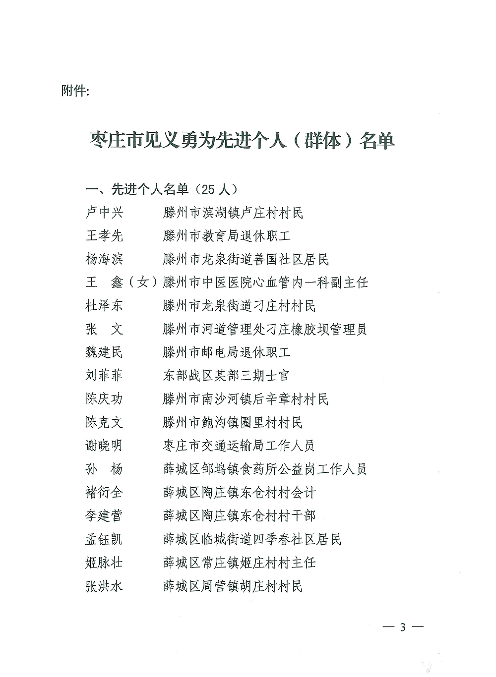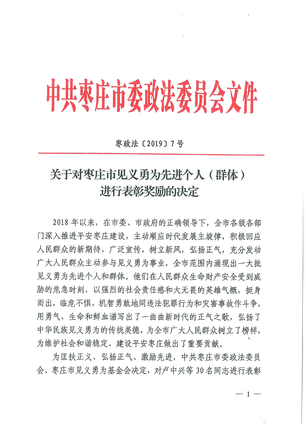 关于对枣庄市见义勇为先进个人(群体)进行表彰奖励的决定